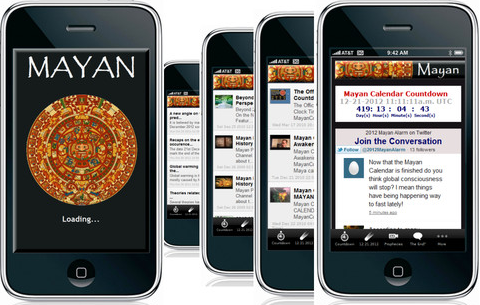 Plusieurs petits malins qui ne croient pas prédictions maya n’ont en revanche pas oublié de surfer sur la vague des calendriers maya. On peut ainsi trouver sur Android , en payant, et sur iOS, en gratuit (Des premiers signes de fin du monde ?) plusieurs applications permettant d’afficher sur Smartphones le compte à rebours pour le 21 décembre 2012.