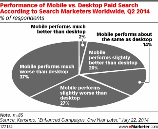 Or, en termes de ROI le Search mobile reste un challenge, 64% des marketers interrogés estiment que le Search mobile performe moins bien que sur PC, ils sont seulement 20% à déclarer qu’il performe mieux.