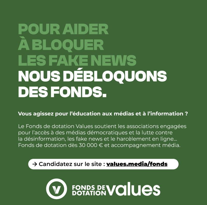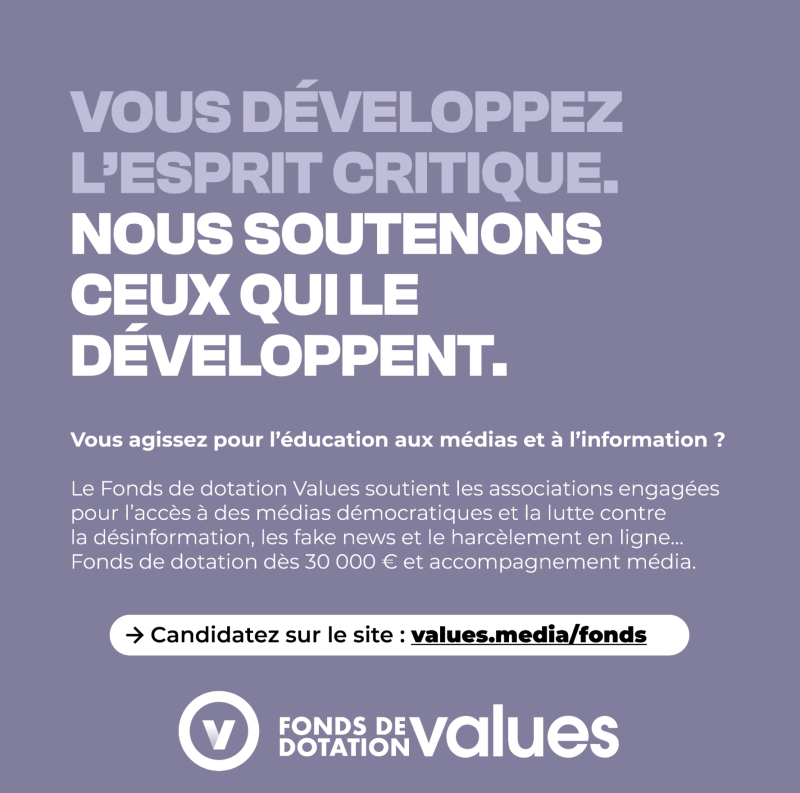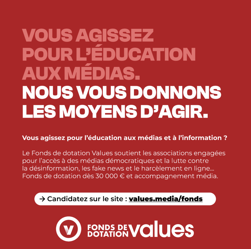 Le Fonds de dotation Values lance son premier appel à projets aux associations qui agissent en faveur de l’éducation aux médias et la défense des valeurs démocratiques.