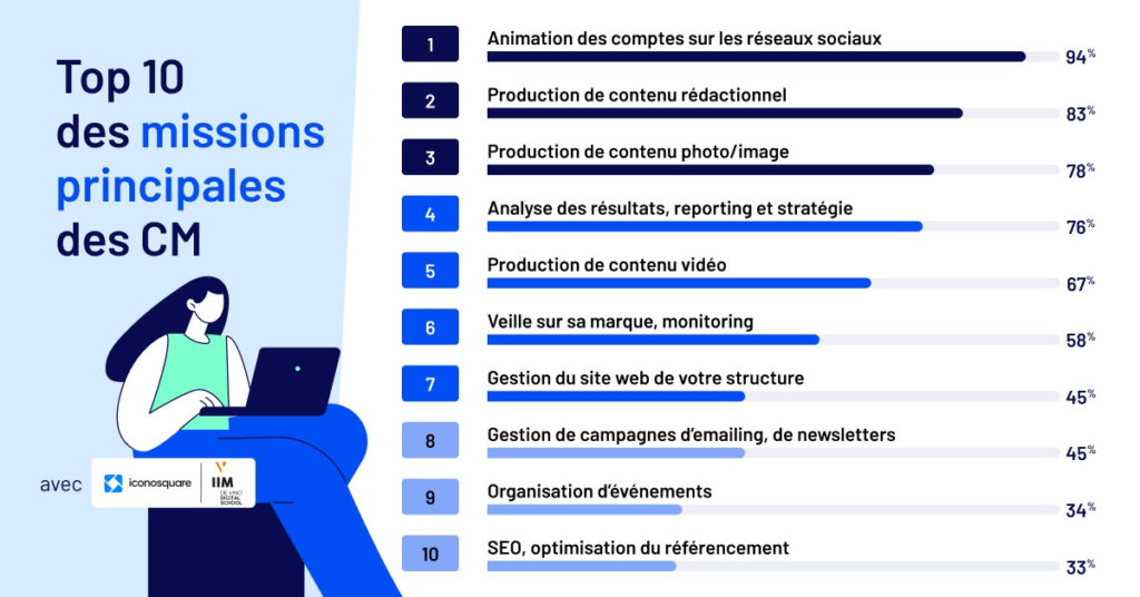 Les community managers sont souvent perçus comme des couteaux suisses. À la fois rédacteurs, graphistes, monteurs ou photographes, les professionnels du social media doivent faire preuve d’adaptabilité, de spontanéité et de curiosité pour diversifier leur contenu et proposer une communication vivante sur les différentes plateformes qu’ils animent. Qu’en est-il en 2025 ? Quelles sont les missions qui mobilisent le plus les community managers ? Réponse en chiffres avec cette nouvelle enquête BDM réalisée avec Iconosquare et l’IIM Digital School.