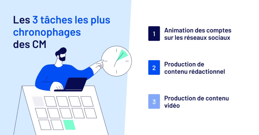 Animation des comptes sur les réseaux sociaux et des communautés : 30 % des répondants indiquent qu’il s’agit de la mission qui leur prend le plus de temps