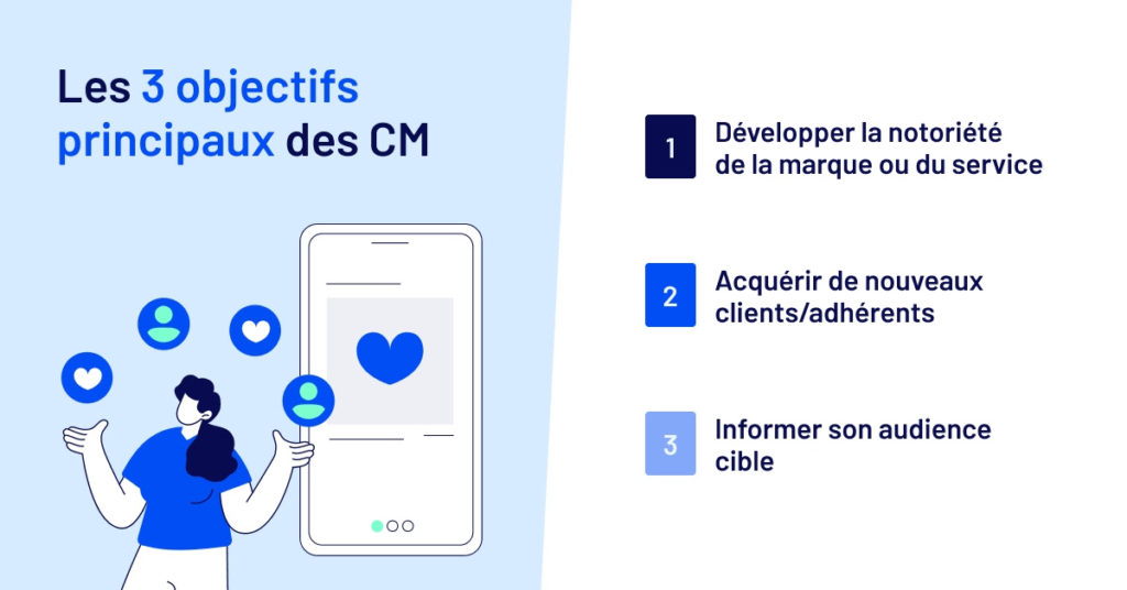 Mais la dimension commerciale n’est pas pour autant négligée : 55 % des community managers indiquent que l’acquisition de nouveaux clients fait partie de leurs priorités. En revanche, si le rôle d’information reste central, les réseaux sociaux semblent encore assez peu envisagés comme un véritable support de service client. Voici les principaux objectifs des community managers en 2025 :