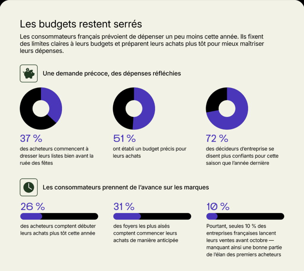 Les consommateurs veulent se faire plaisir tout en gardant le contrôle. Un quart d’entre eux prévoit même de commencer leurs achats plus tôt, alors que seules 10 % des entreprises comptent lancer leurs opérations avant octobre. Un décalage qui pourrait coûter cher, notamment car les foyers les plus aisés sont aussi les plus anticipateurs.